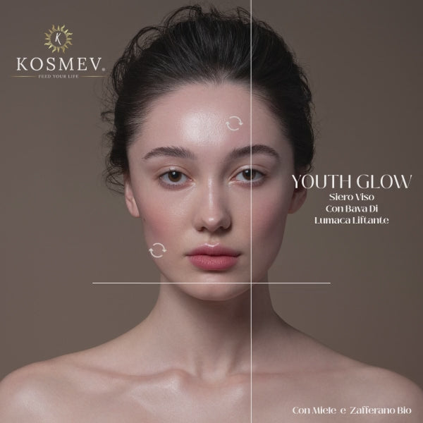 YOUTH GLOW KOSMEV FEED YOUR LIFE® Siero Viso Anti-Età con Miele e Zafferano, bava di Lumaca e Botox Like Liftante Bio 30ml